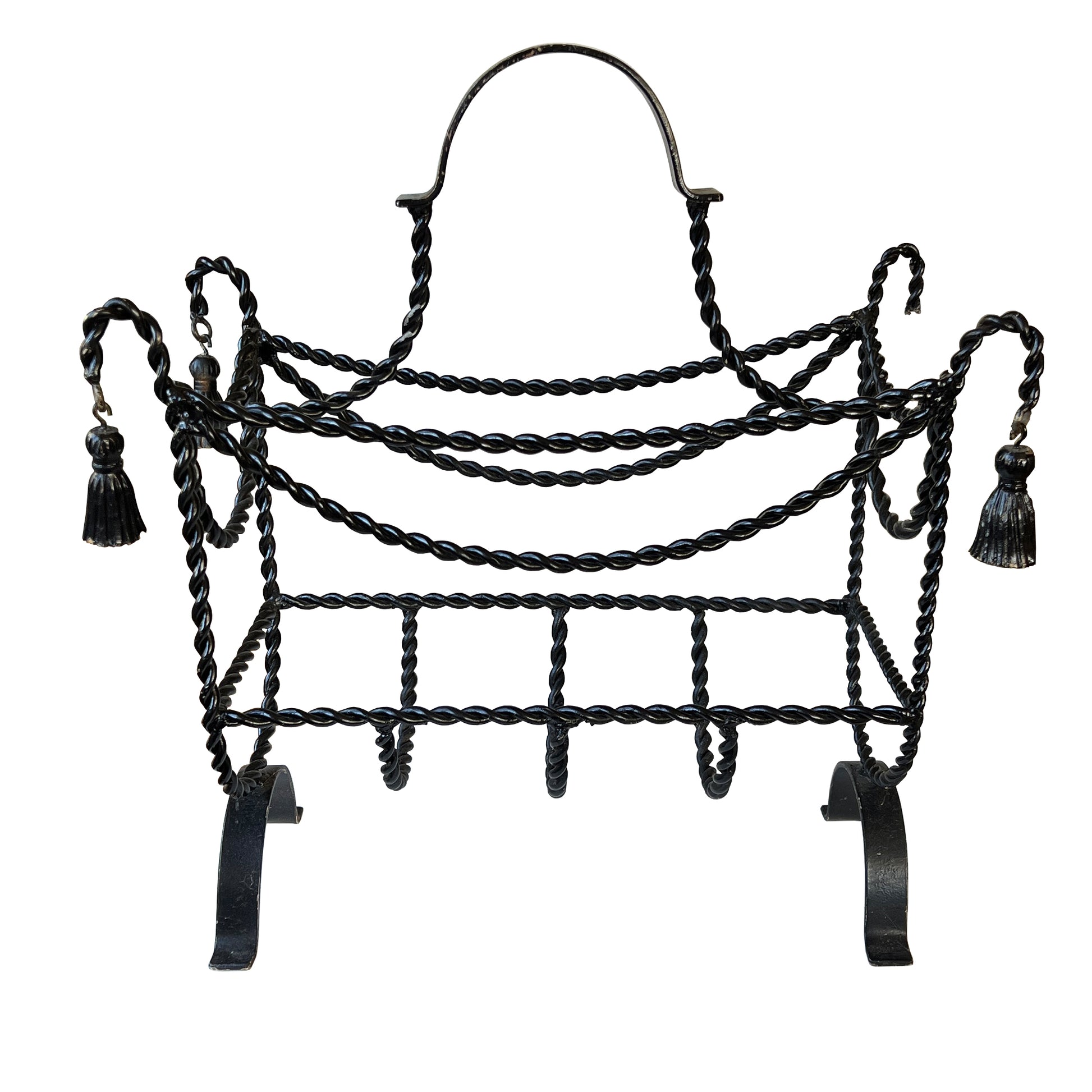 Vintage Twisted Iron Tassel Magazine Rack — Hollywood Regency Style