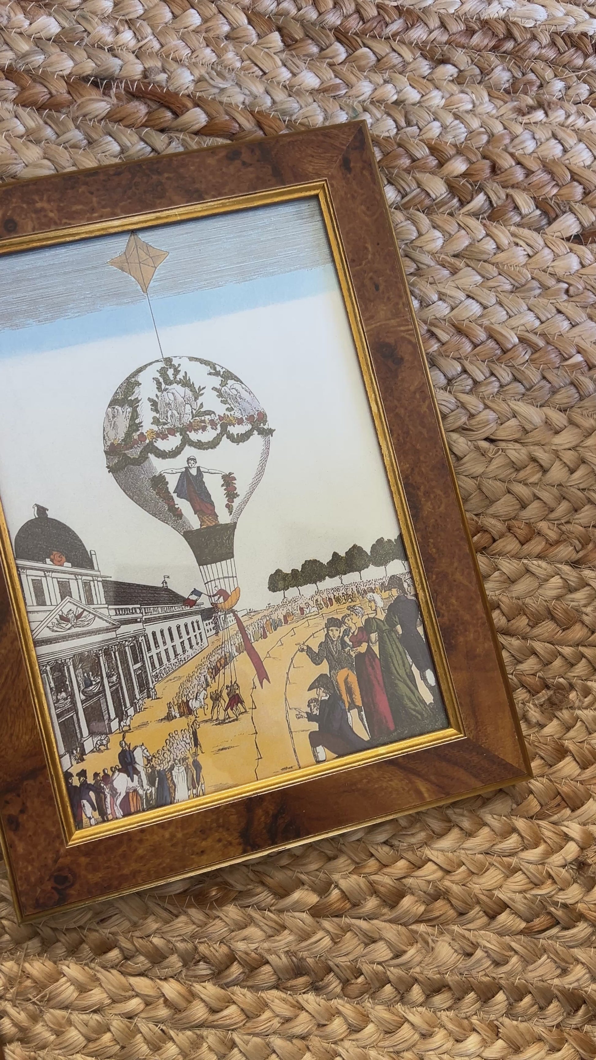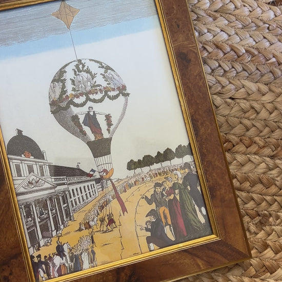 Pair of 18th-Century Hot Air Balloon Lithograph in Burlwood Frames