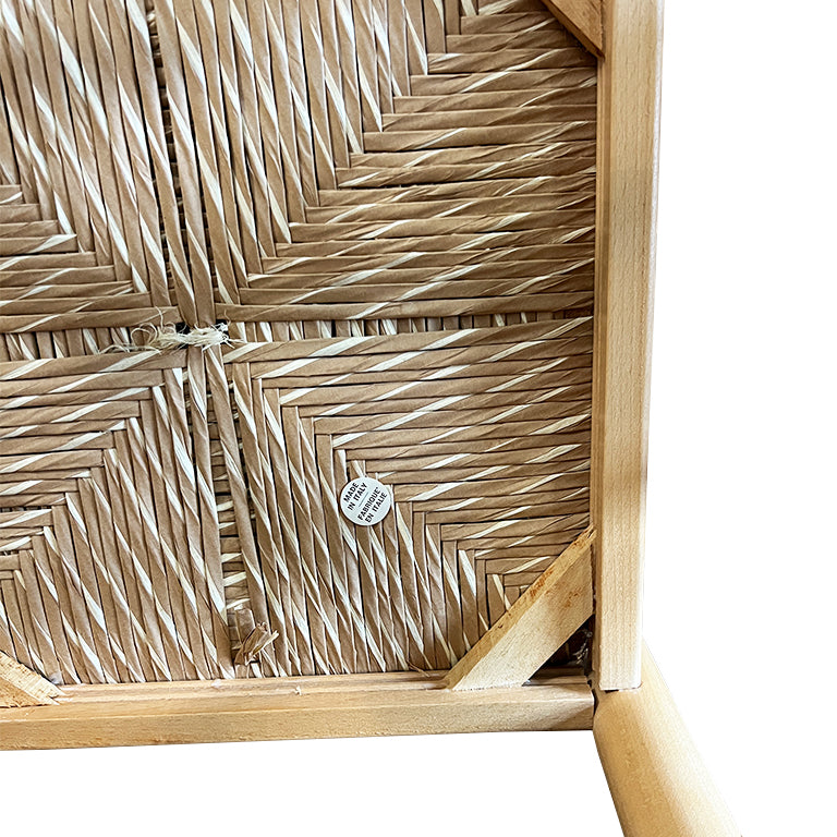 A timeless set of four Italian handcrafted dining chairs, featuring natural wood frames and handwoven rush seats in a classic Italian country style. Stamped "Made in Italy," these chairs reflect the simple elegance of mid-century rural craftsmanship—a perfect marriage of form and function.