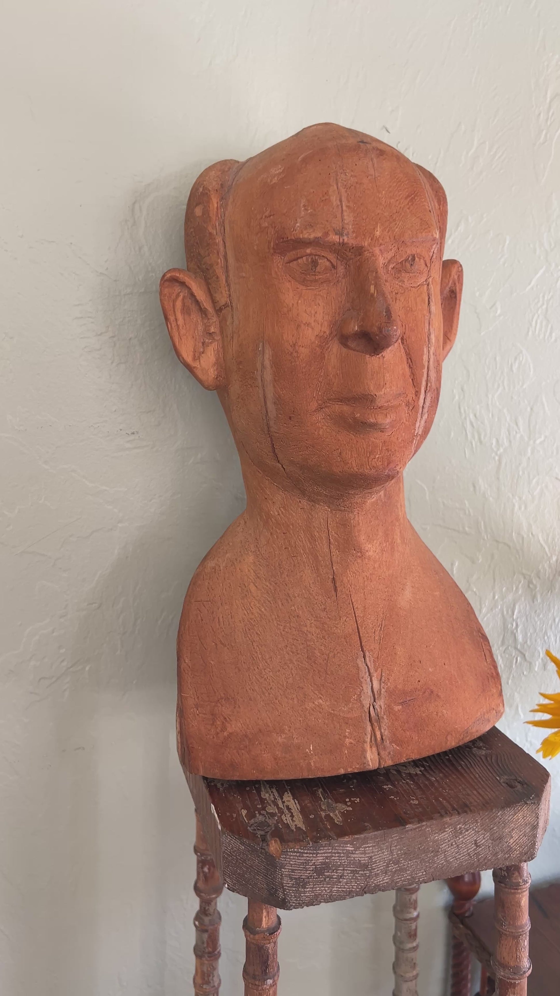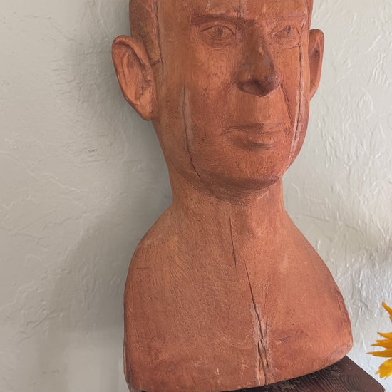 Mid-Century Hand-Carved Wooden Male Bust Sculpture — Jonathan Parks Estate