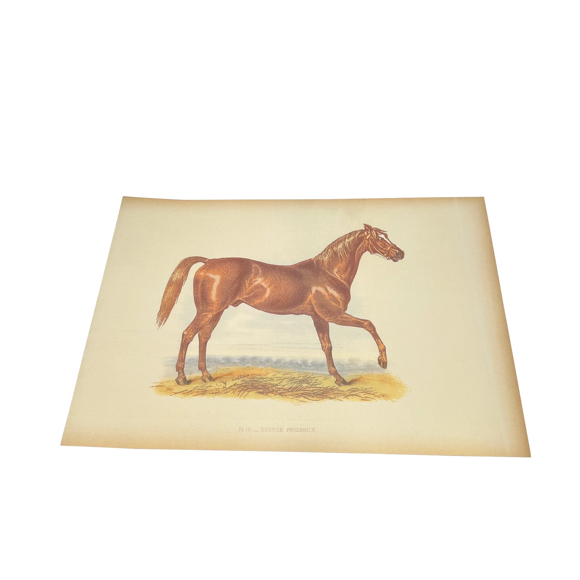 A handsome vintage equestrian print depicting George Frederick (1871), one of Britain’s most celebrated thoroughbreds of the 19th century. The horse, shown in full profile against a softly rendered landscape, is identified beneath as “Pl. 18 — George Frederick.”