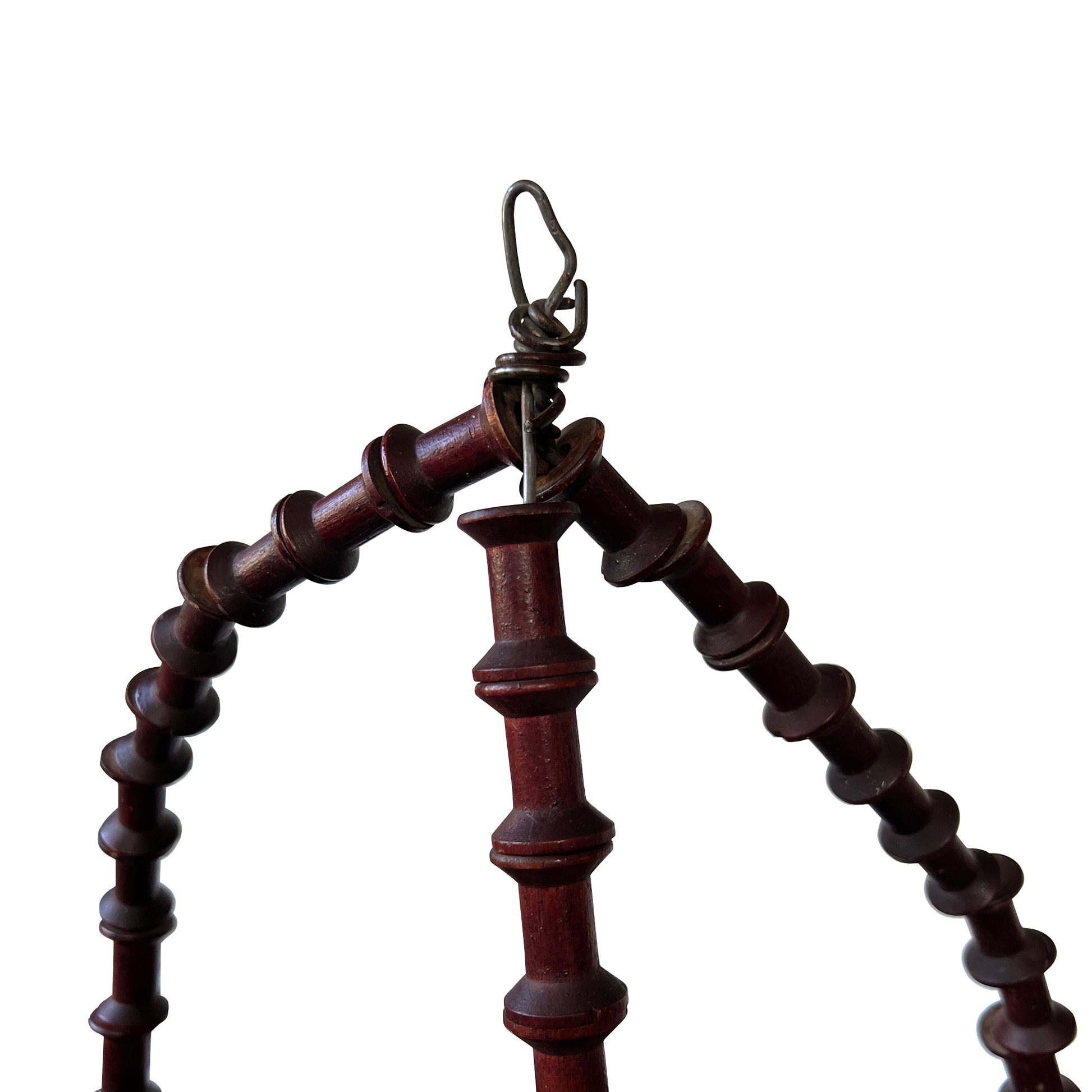 Perfect for displaying folk art, ironstone, small ceramics, or botanical curiosities, this hanging shelf adds vertical interest and texture to a wall or corner space. Its oxblood hue and turned silhouette blend seamlessly into cottage, colonial, Santa Fe adobe, or modern farmhouse interiors.
